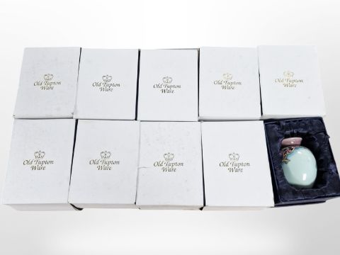12 matching Old Tupton Ware floral bulbous pottery vases, height 11cm, all boxed.
