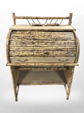 A bamboo and wicker tambour front bureau, 89 cm x 57 cm x 130 cm
