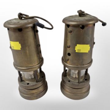 Two Ferndale Coal brass miner's lamps.