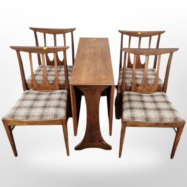 A G Plan teak drop-leaf dining table, width 91cm, together with a set of four dining chairs.