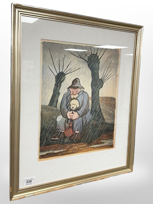 A continental colour print depicting a man with a dog, 29cm x 38cm.