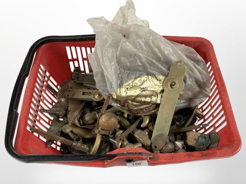 A tub of vintage brass door handles