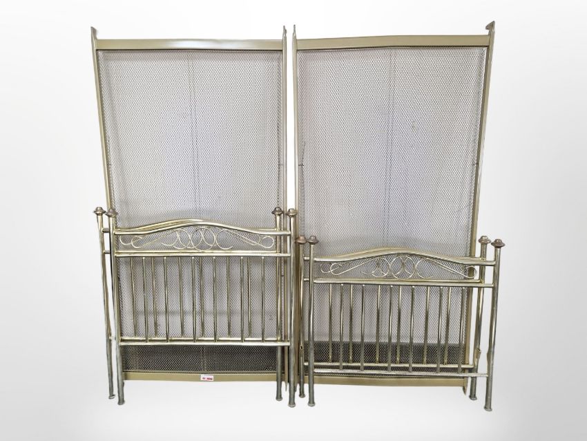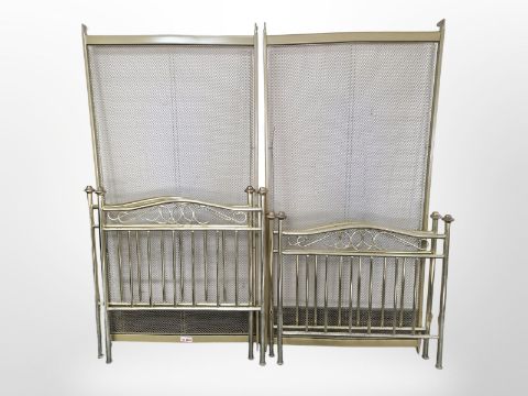A pair of contemporary brass 3' bed frames
