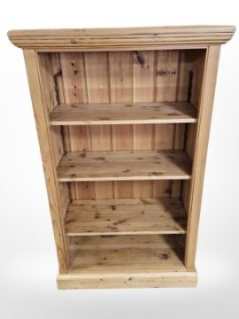 A modern pine open bookcase, 77 cm x 35 cm x 127 cm