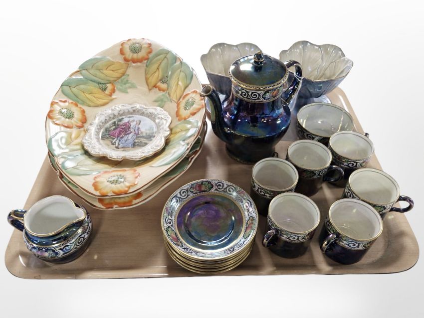 A 15-piece Maling lustre coffee set, further pair of Sunday dishes, an Old Foley dish, and a pair of Falcon Ware ovoid dishes.