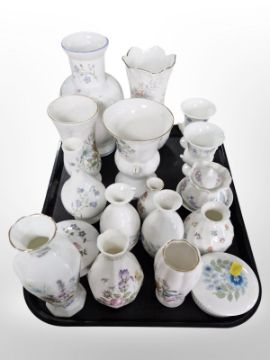 A group of porcelain vases and trinket boxes including Aynsley, Wedgwood, Astbury.