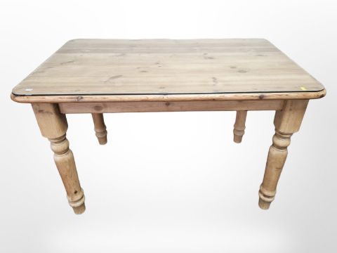 A pine farmhouse table with plate glass top, 122 cm x 73 cm x 76 cm