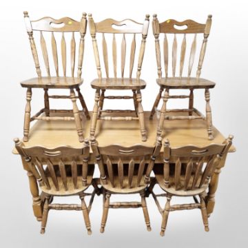 A contemporary oak kitchen table, length 167 cm, and six chairs
