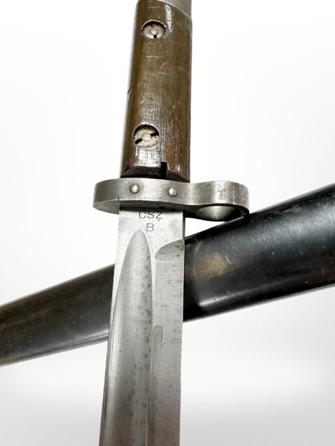 A Czechoslovakian VZ24 Mauser knife bayonet, with steel scabbard, blade 30cm.