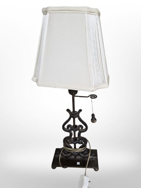 A contemporary patinated metal table lamp, height 64 cm