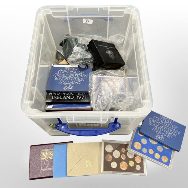 A substantial quantity of coins, including Crowns, Churchill Crowns, 1951, 1953, 1960 crowns, American proof sets, many other coins, silver etc ( 1 box)