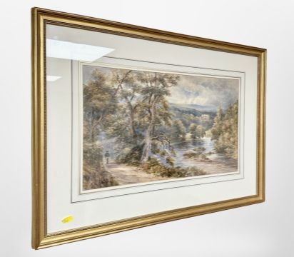 British School, late 18th century, Figure in a landscape with distant ruins, watercolour, 53cm by 31cm