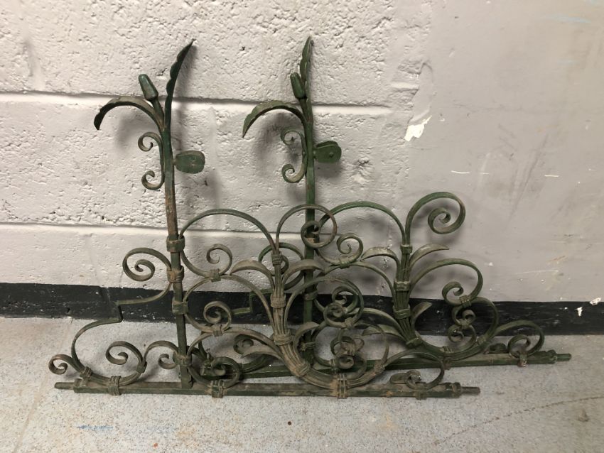 A pair of painted wrought iron wall brackets, length 71 cm