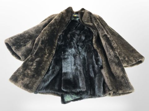 Two lady's brown mink fur coats and a further synthetic coat