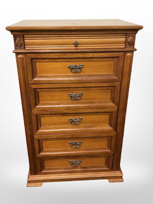 A Rossmore Furniture six drawer chest, 72 cm wide x 50 cm deep x 114 cm high