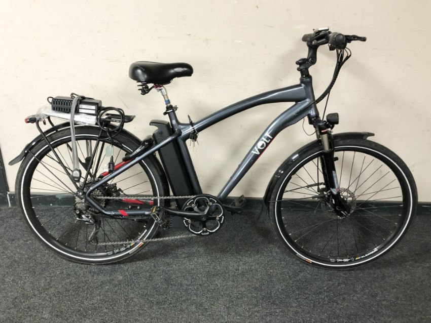 A Volt Pulse E-Bike with battery pack, charging lead and several keys.
