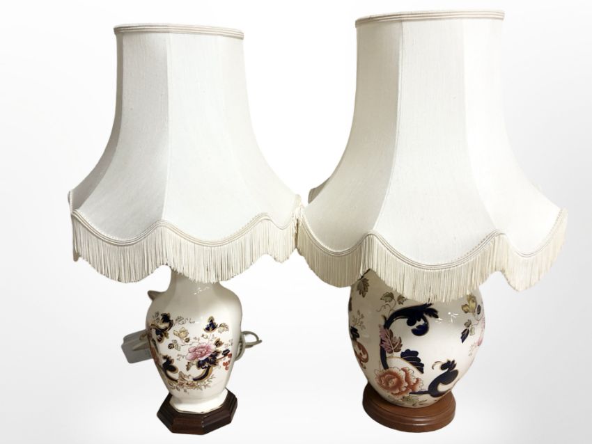 Two Masons table lamps with shades, height 56cm.