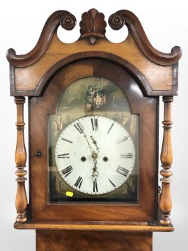 A Victorian mahogany and oak 30 hour longcase clock, with pendulum and weight, painted 12" dial, height 221cm.