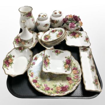 16 pieces of Royal Albert Old Country Roses cabinet china, including pair of ginger jars, dishes, etc.