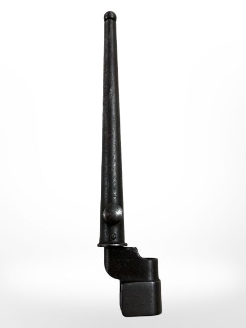 A British Military bayonet No 4 Mk I cruciform blade spike bayonet with scabbard, pommel stamped 'No 4 Mk 1 S.M', blade 20cm long.
