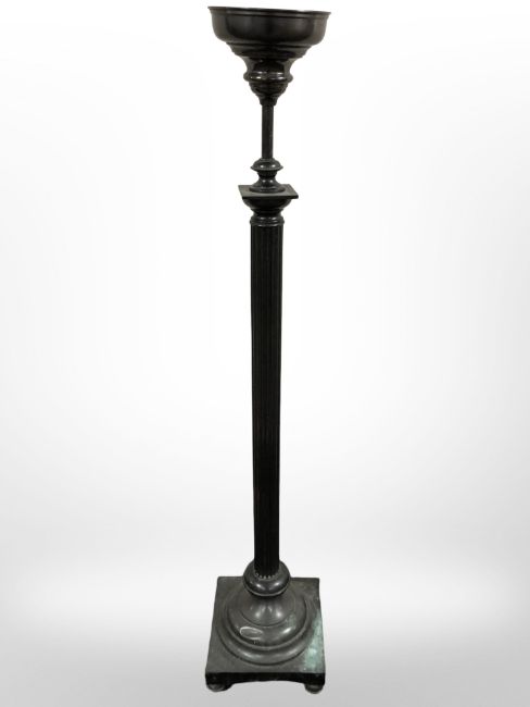 An early 20th century patinated metal smoker's stand, height 134 cm