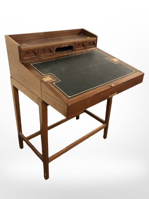 A mahogany fall-front clerk's writing desk with tooled leather interior, width 79 cm