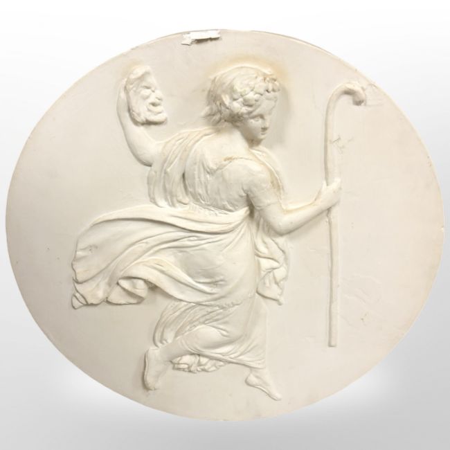 A reproduction plaster circular wall plaque, diameter 64cm.