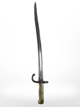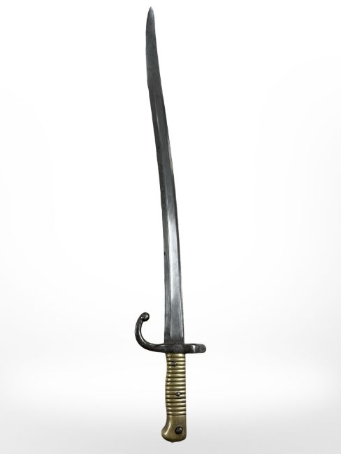 A French Chassepot sabre bayonet Modele 1866, with brass grips, manufactured Etienne 1871, blade 57cm long.