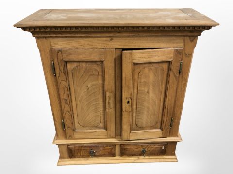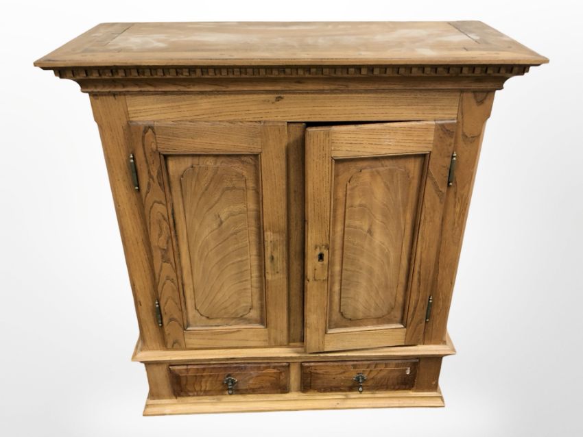 An early 20th century elm double door bookcase top with internal drawers, 81cm x 34cm x 87cm.