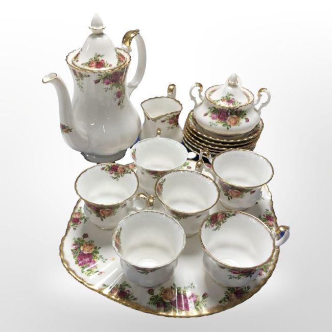 A Royal Albert Old Country Roses 15 piece tea service and matching scalloped edge tray (16)