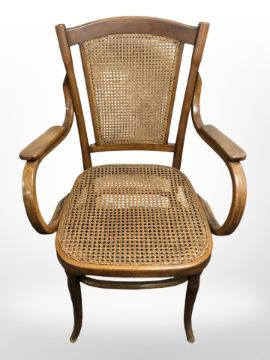 A beech and bergere armchair.