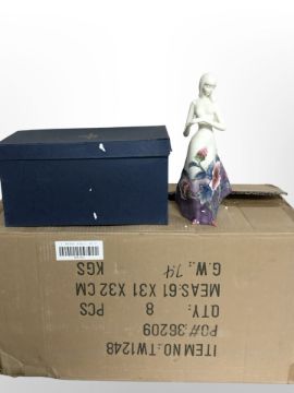 Eight Old Tupton Ware pottery figures of ladies in floral dresses, height 26cm, all boxed. (1 box)