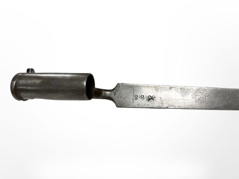 A British Pattern 1839 socket bayonet, 43cm blade stamped 'G Salter & Co.'