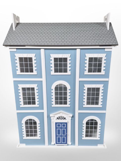A Georgian style three storey doll's house, 62 cm wide x 32 cm deep x 87 cm high