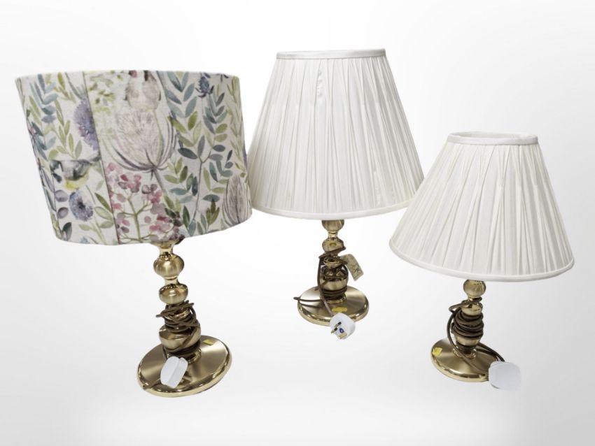 Three modern table lamps with shades, tallest 55 cm