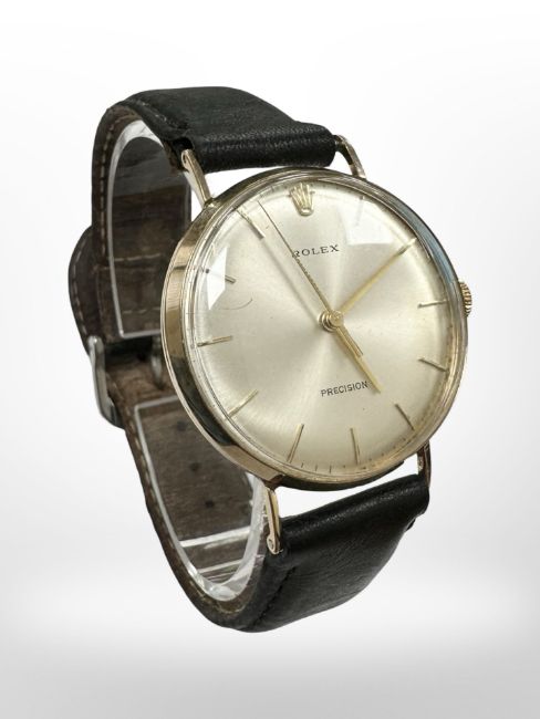 A gent's vintage 9ct gold Rolex Precision centre seconds wristwatch, with Rolex crown, plain snap-on case back with no inscription, case 32mm.
