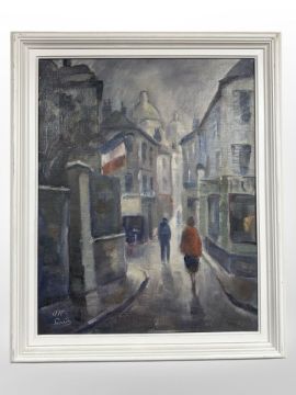 Danish School : Figures in a street, oil on canvas, 39 cm x 49 cm.