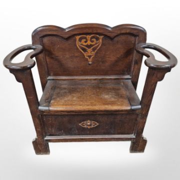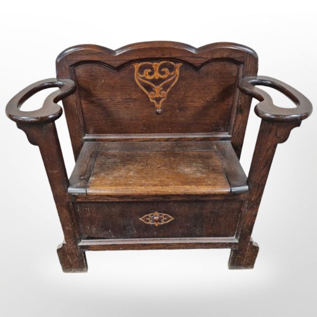 An Edwardian oak hall seat/umbrella stand, 87 cm x 33 cm x 82 cm