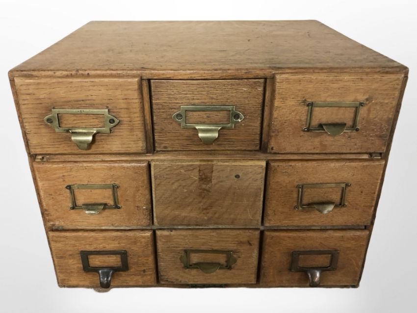 An Edwardian oak nine drawer index chest, width 49 cm