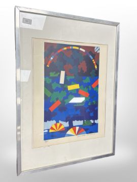 A Danish abstract lithograph, indistinctly signed, 39 cm x 49 cm.
