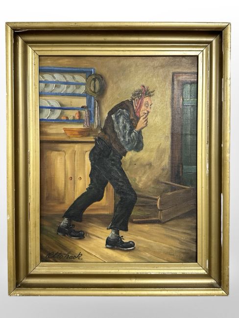 Otto Hack : A figure in a cottage interior, oil on canvas, 31 cm x 40 cm.