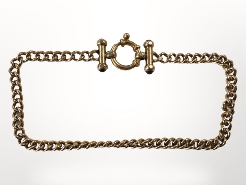 A 9ct gold bracelet with cabochon-set clasp ends, length 22cm