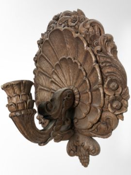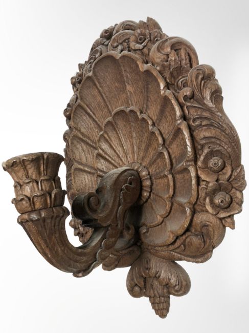 A continental heavily carved oak Baroque style candle sconce, height 40 cm.
