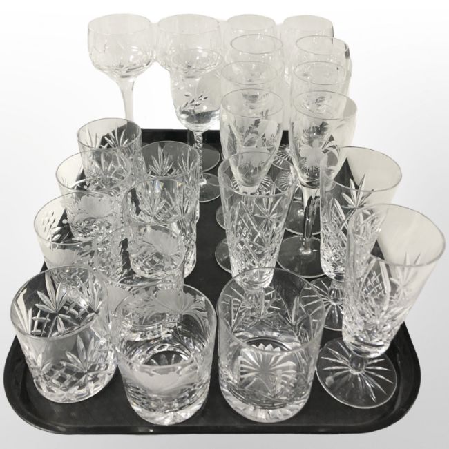 A group of lead crystal tumblers and wine glasses (some pieces by Brierley)