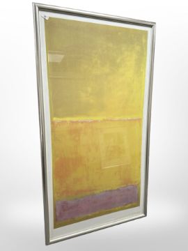 A continental colour print, in abstract landscape, 79 cm x 150 cm.