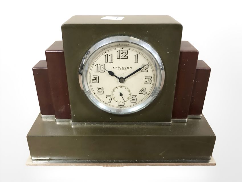 An Art Deco Ericsson Supremo mantel clock, height 11.5 cm