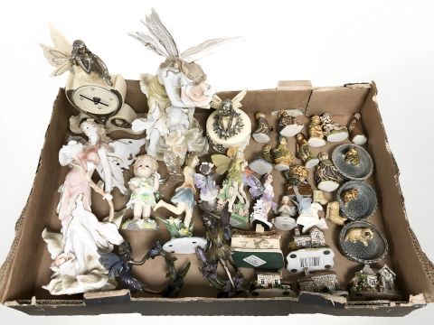 A quantity of ceramic figures, David Winter cottage and four other similar models, fairy figures etc
