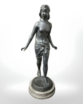 A continental Art Deco silvered metal figure of a semi-nude female, on polished marble socle, height 29.5 cm.