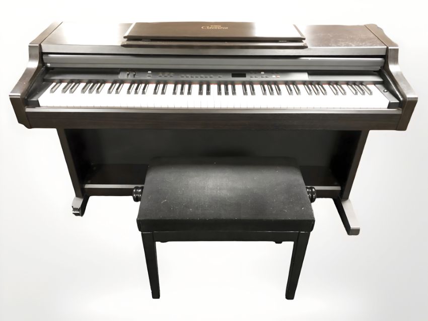 A Yamaha Clavinoha CLP-840 keyboard with lead and stool, width 140 cm