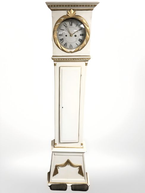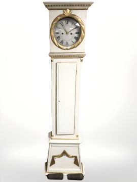 A continental painted and gilt longcase clock, with weights only, height 197 cm